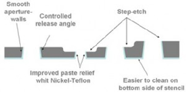 Nikkeli-PTFE (Teflon) pienetää pintaenergiaa, mikä parantaa pinnan irtoamisominaisuuksia. HP Etch on patentoinut ℗ stensiilien NI-PTFE pinnoitteen jo vuonna 2005.